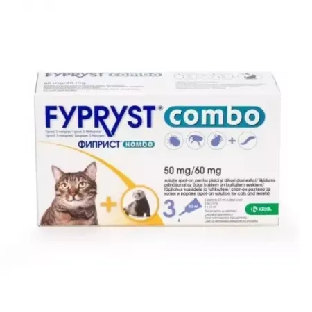 Pipete antiparazitare pentru pisici Fypryst Combo, 50 mg, 3 pipete, Krka [3838989635428]