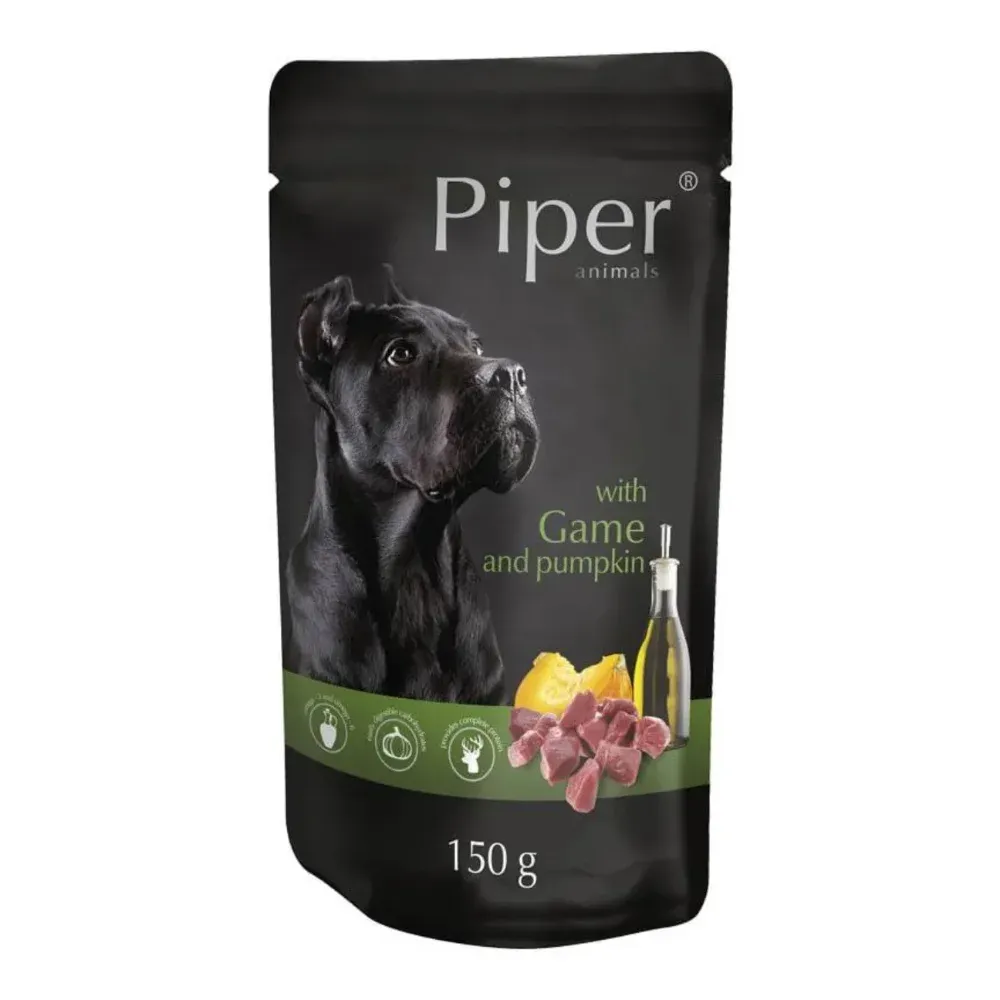 PIPER Vanat si Dovleac 1500g este o hrana umeda completa pentru caini cu vanat si dovleac.