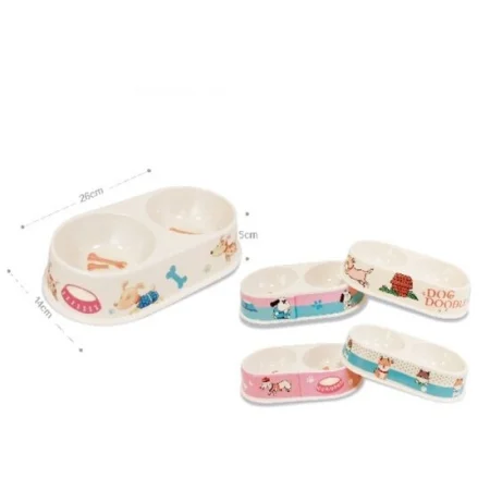 Castron dublu ceramic din melamina pentru caini, pisici, Hrana si Apa, Margini scurte