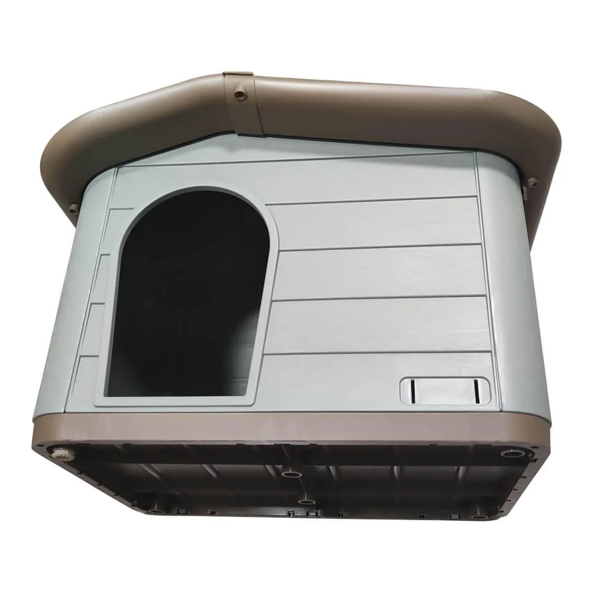 Casa pentru caini de talie medie sau pisici, se asambleaza, din material plastic cu acoperis detasabil (prinderea se face cu suruburile incluse).