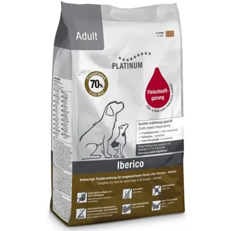 Mâncarea noastră uscată pentru adulți din porc iberic si FĂRĂ CEREALE Platinum Adult Iberico + Greens este preparată prin gătirea cărnii proaspete de porc iberic în sucul propriu. Gătitul cu suc de carne este un mod special de preparare a cărnii proaspete care provine din bucătărie, nu din industria hranei pentru animale. Metoda de gatire s-a bazat pe tehnici pe care bucătarii de top le folosesc adesea pentru a face carnea mai gustoasă prin sucul de carne. Gătitul cu suc de carne este o combinație selectată a acestor tehnici de pregătire, adaptate nevoilor fizice și intereselor câinelui.