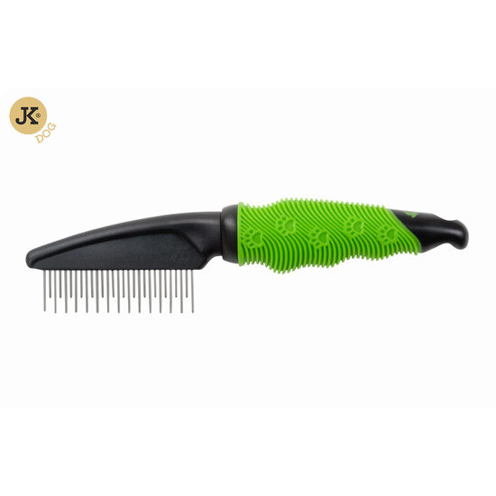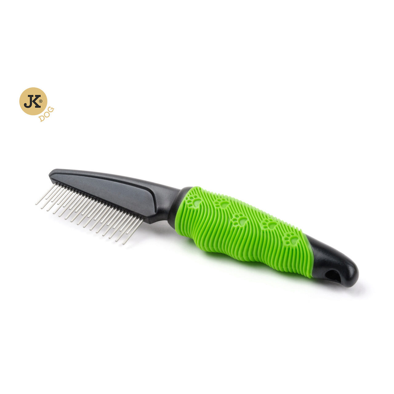 Prevazut cu 29 de ace rotative alternante, mici si mari din otel inoxidabil cu varful rotunjit,bland cu pielea animalului,acesta este foarte potrivit pentru toate rasele de caini cu parul mai mare. Acele mari patrund adanc in blana curatand,inepartand si lasand in urma o blana fina si matasoasa.