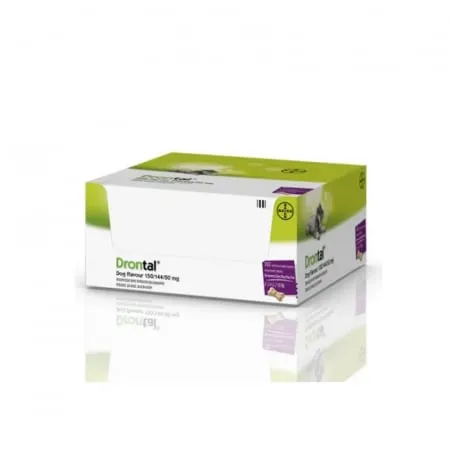 Doza recomandată este de 15 mg febantel, 14,4 mg pirantel embonat şi 5 mg praziquantel / kg greutate corporală. Aceasta corespunde la 1 comprimat Drontal Plus Flavour pe 10 kg greutate corporală.