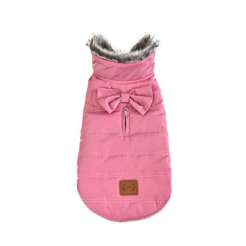 4DOG DELUXE Bowtiful Roz 35 cm este o hainuta de iarna pentru caini, cu lungimea de 35 cm. Hainuta reprezinta alegerea ideala pentru cainele tau de talie mica pentru zilele friguroase. Cainele tau va fi protejat de frig si in pas cu moda in acelasi timp. Pentru a fi singuri ca hainuta pe care o comandati se potriveste catelului dumneavoastra, va recomandam sa masurati catelul de la baza gatului, locul unde sta, de obicei, zgarda, pana la baza cozii.
