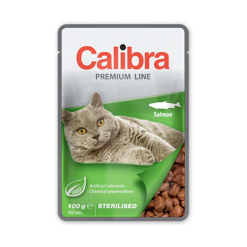 Calibra Cat Sterilised cu Somon, 100 g este o hrana umeda pentru pisici adulte sterilizate cu carne de somon in sos delicios.