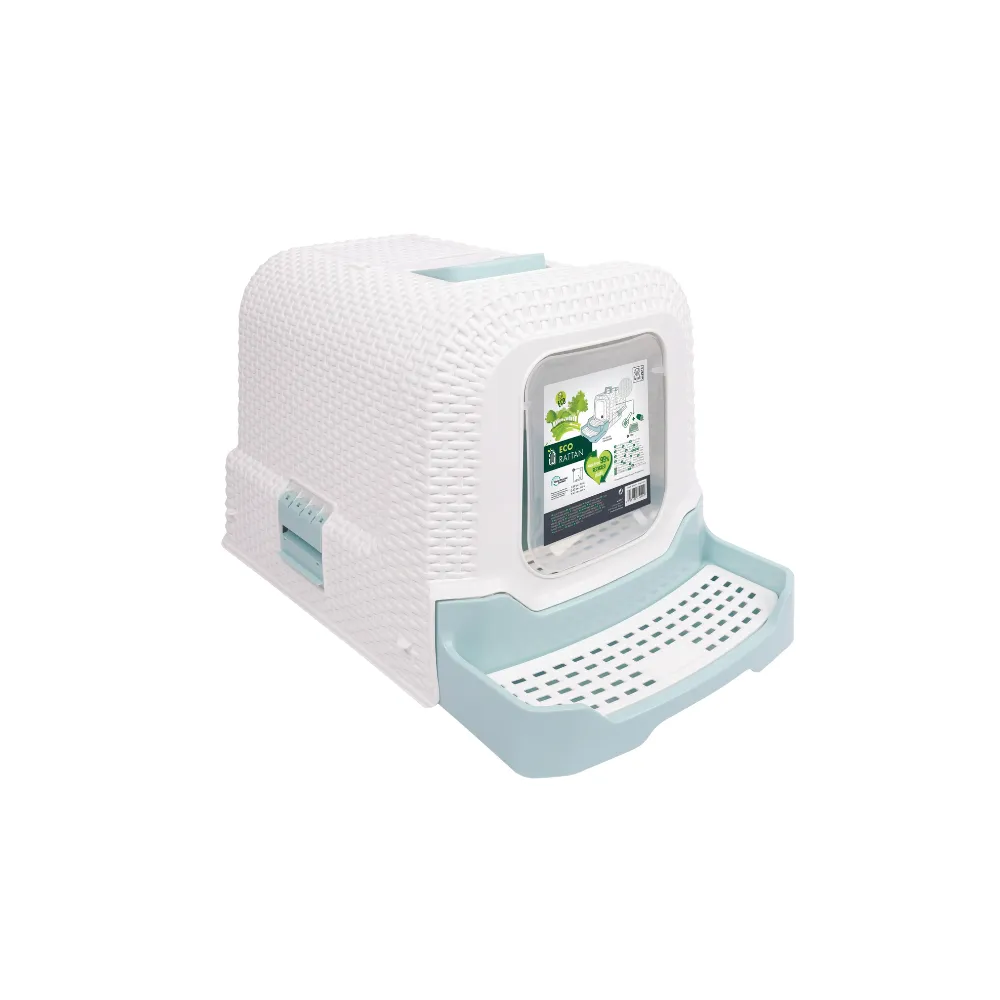Gama noastră RATTAN se extinde! Vă prezentăm ECO RATTAN, litiera elegantă pentru pisici pe care o cunoașteți și o iubiți, acum disponibilă în culori noi și fabricată din 99% plastic reciclat! Gama prezintă un aspect elegant cu textură de ratan și un sistem practic de prindere pentru a menține tava la locul ei. Toate litierele sunt dotate cu un compartiment superior care conține saci de deșeuri, o lingură pentru litiera și un filtru de carbon activ, pentru a purifica mirosurile neplăcute.