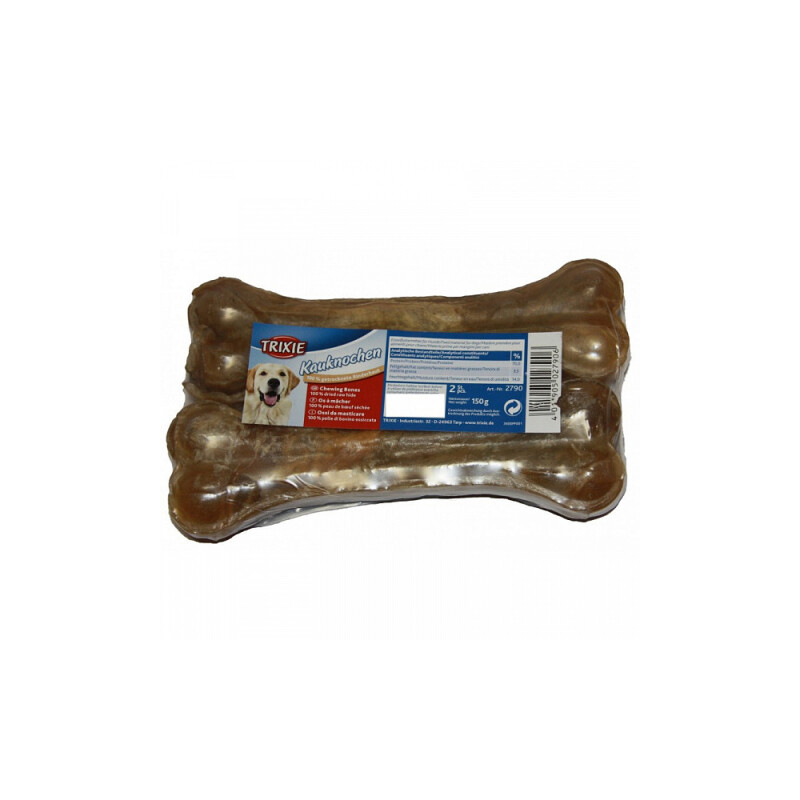 Recompensa de mestecat sub forma de os presat pentru caini este un produs delicios si sanatos, ideal pentru a satisface instinctul natural mestecat al catelului. Aceasta este fabricata din 100% piele bruta uscata, ceea ce ii confera o textura robusta si un gust atragator.