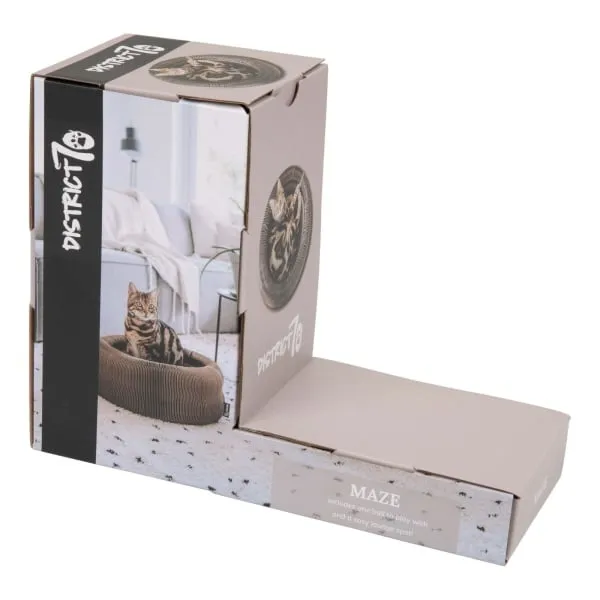 Nu sunt necesare unelte, MAZE este ușor de asamblat și demontat. Țineți mânerele și extindeți-l spre exterior, apoi desfaceți culcusul de carton pentru pisici. Fixați mânerele împreună folosind velcro și pisica dvs. poate începe să se joace, să zgârie sau să se relaxeze! Îl poți plia și depozita dacă ai nevoie de mai mult spațiu atunci când pisica ta nu îl folosește.