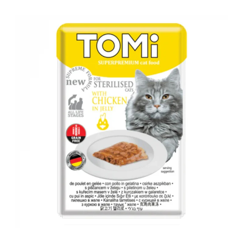 Hrana umeda pentru pisici sterilizate Tomi Sterilizat Pui 85g - Hrana completa pentru pisici sterilizate.