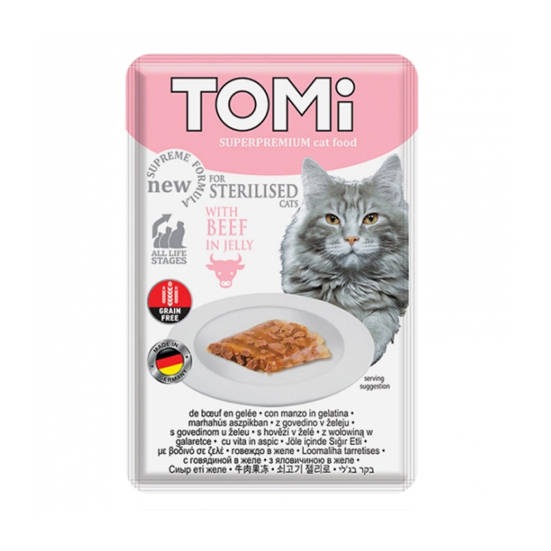 TOMI cu vita in aspic reprezinta hrana completa, fara cereale, pentru pisici sterilizate