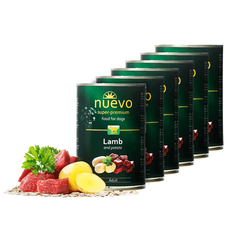 Conserva Nuevo Dog cu miel si cartofi este o hrana umeda superpremium, bogata in carne de miel si cartofi, special formulata pentru a acoperi integral cerintele nutritionale crescute ale cainilor adulti, in perioada de crestere si dezvoltare.